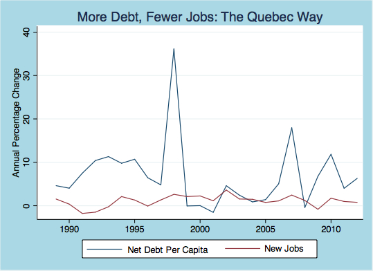 She’ll be disappointed because Quebec’s spending spree over the last 20 years, which has seen it wrack up the highest debt-to-GDP ratio of any province, has failed to make it a jobs-creating engine.