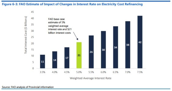 By the time all of the debt associated with the Fair Hydro Plan is paid off in 2047, the original $18.4 billion will have been paid back, as well as $21 billion in interest costs. If interest rates rise by one percent, that $21 billion figure jumps to $30 billion.