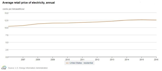 Yet, residential electricity prices in the United States have increased by the rate of inflation over the last decade have and, in many places, actually declined in recent years, as shown in the following chart. Those customers are now getting more reliable service at a lower cost.